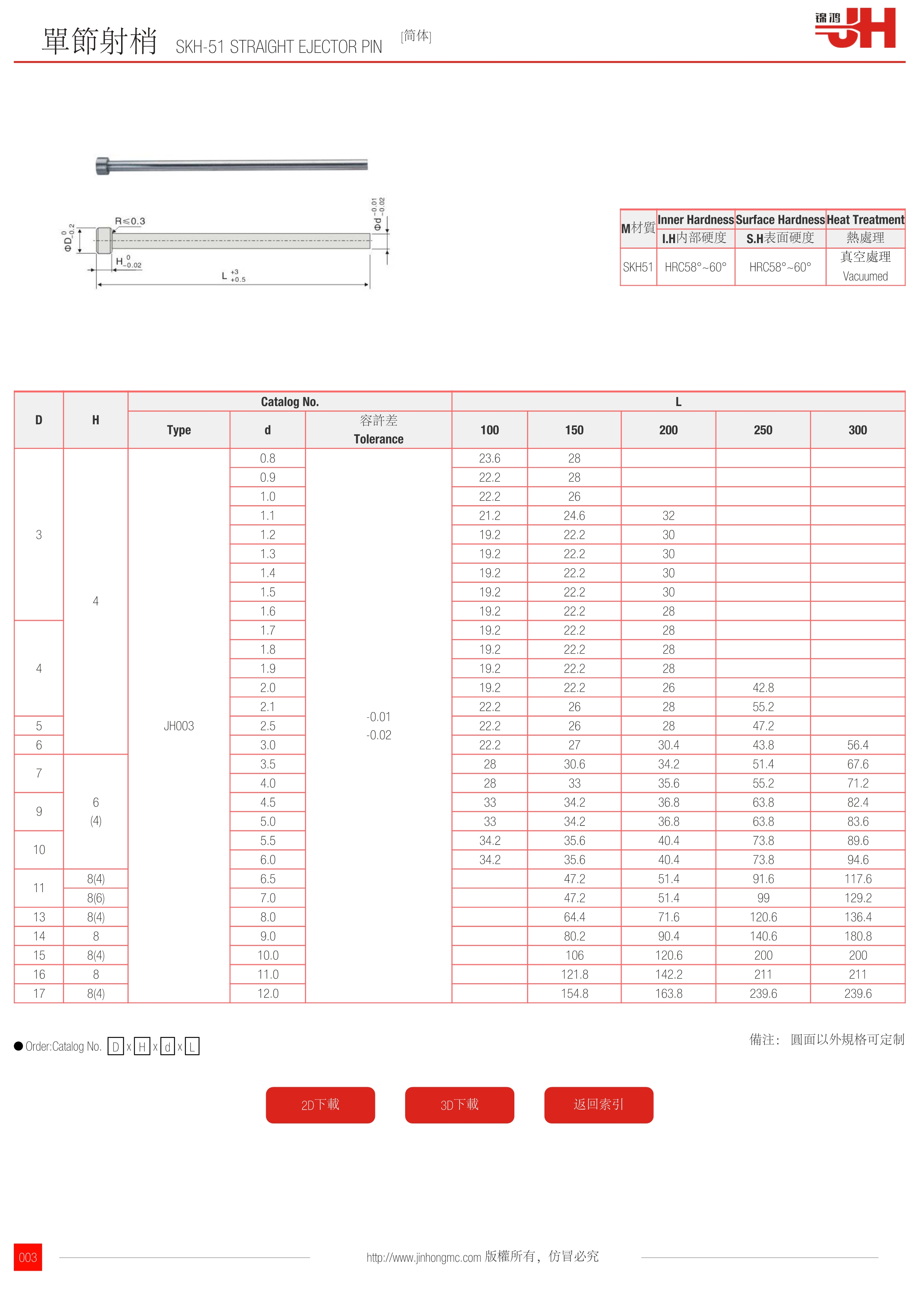 | I.H內部硬度 | S.H表面硬度 | 熱處理 | |