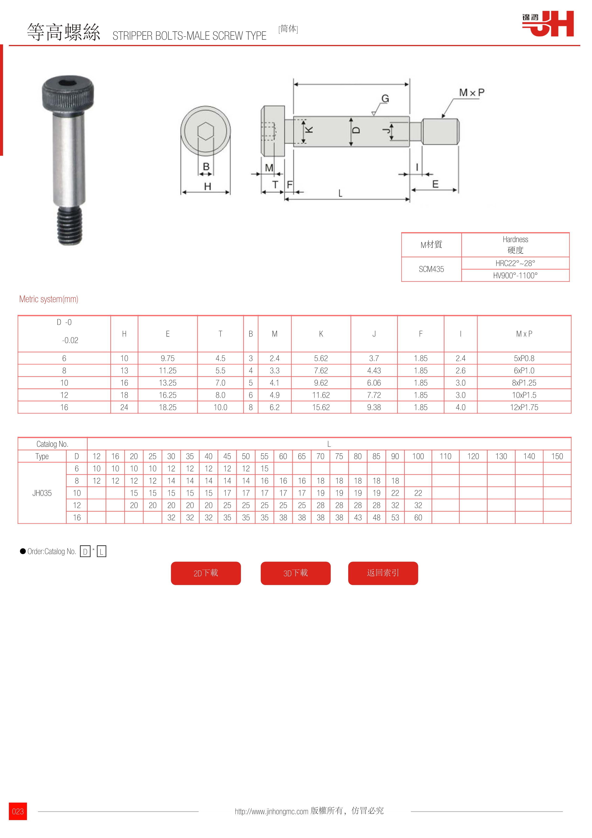 | Type | D | 12 | 16 | 20 | 25 | 30 | 35 | 40 | 45 | 50 | 55 | 60 | 65 | 70 | 75 | 80 | 85 | 90 | 100 | 110 | 120 | 130 | 140 | 150 |