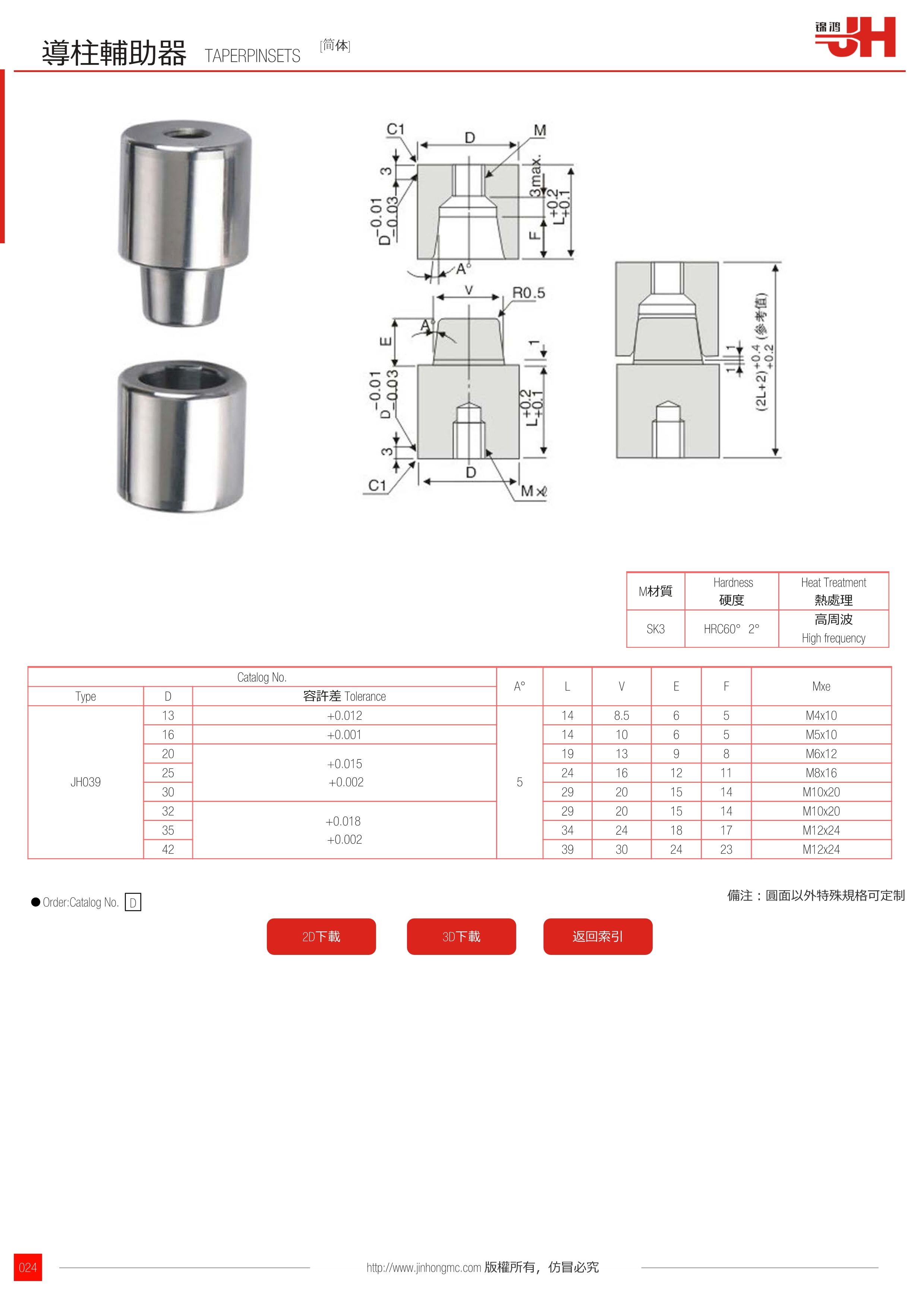 | JH039 | 13 | +0.012 | 5 | 14 | 8.5 | 6 | 5 | M4x10 |