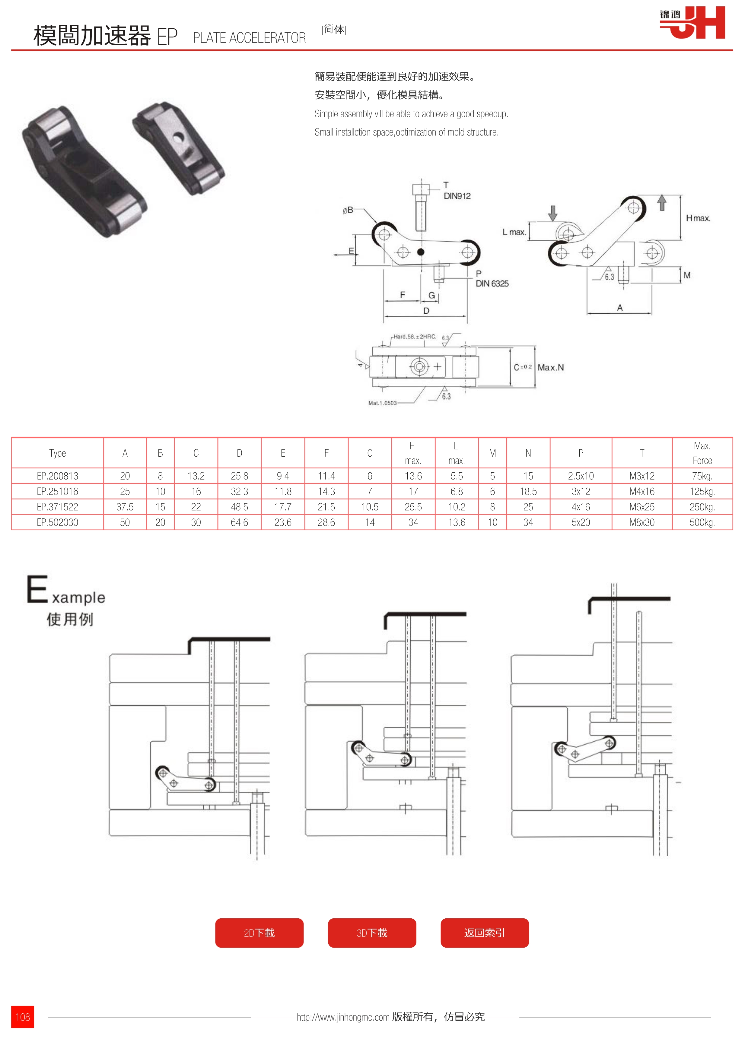 | EP.200813 | 20 | 8 | 13.2 | 25.8 | 9.4 | 11.4 | 6 | 13.6 | 5.5 | 5 | 15 | 2.5x10 | M3x12 | 75kg. |