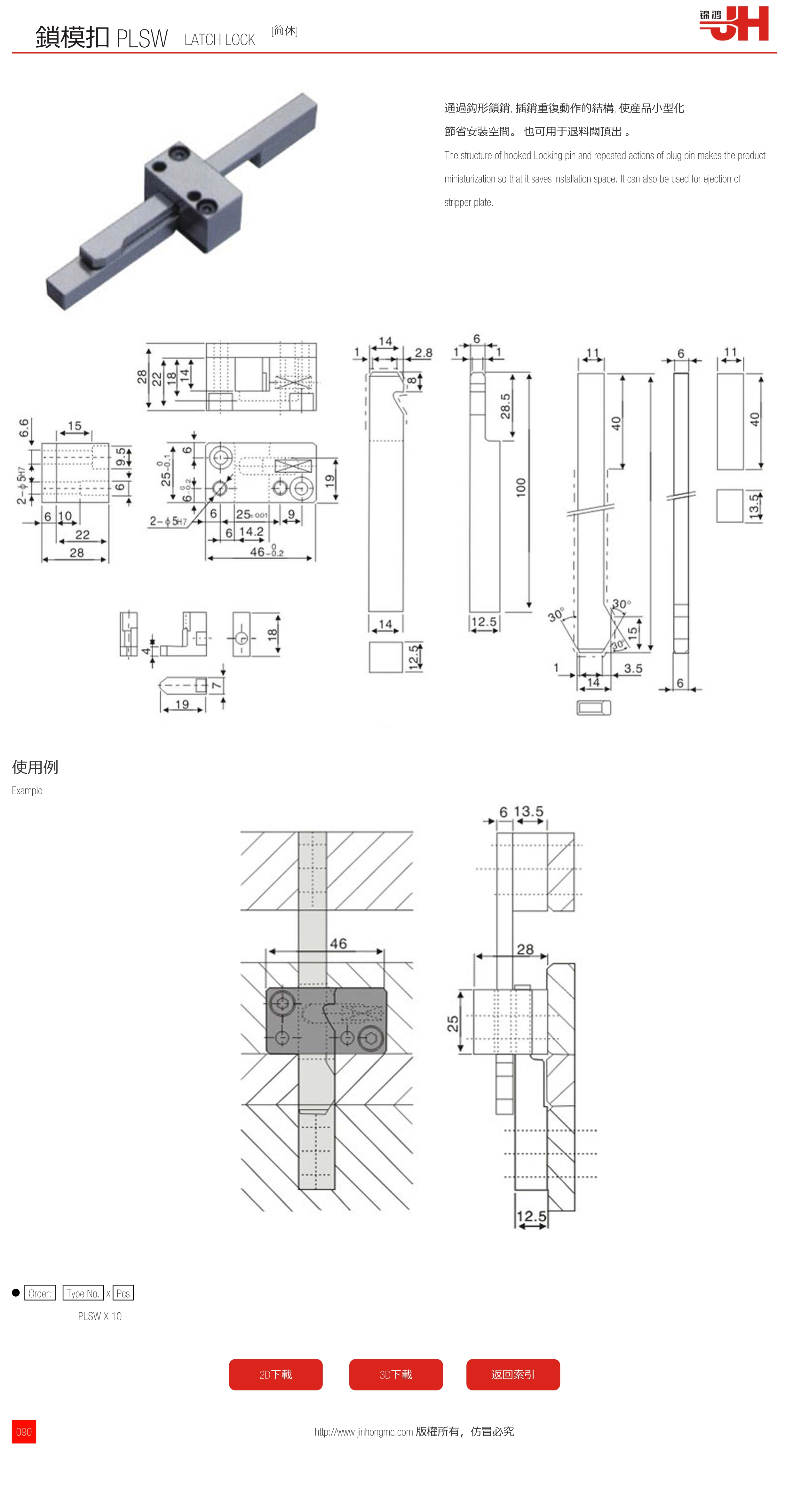通過鈎形鎖銷, 插銷重復(fù)動作的結(jié)構(gòu), 使産品小型化
