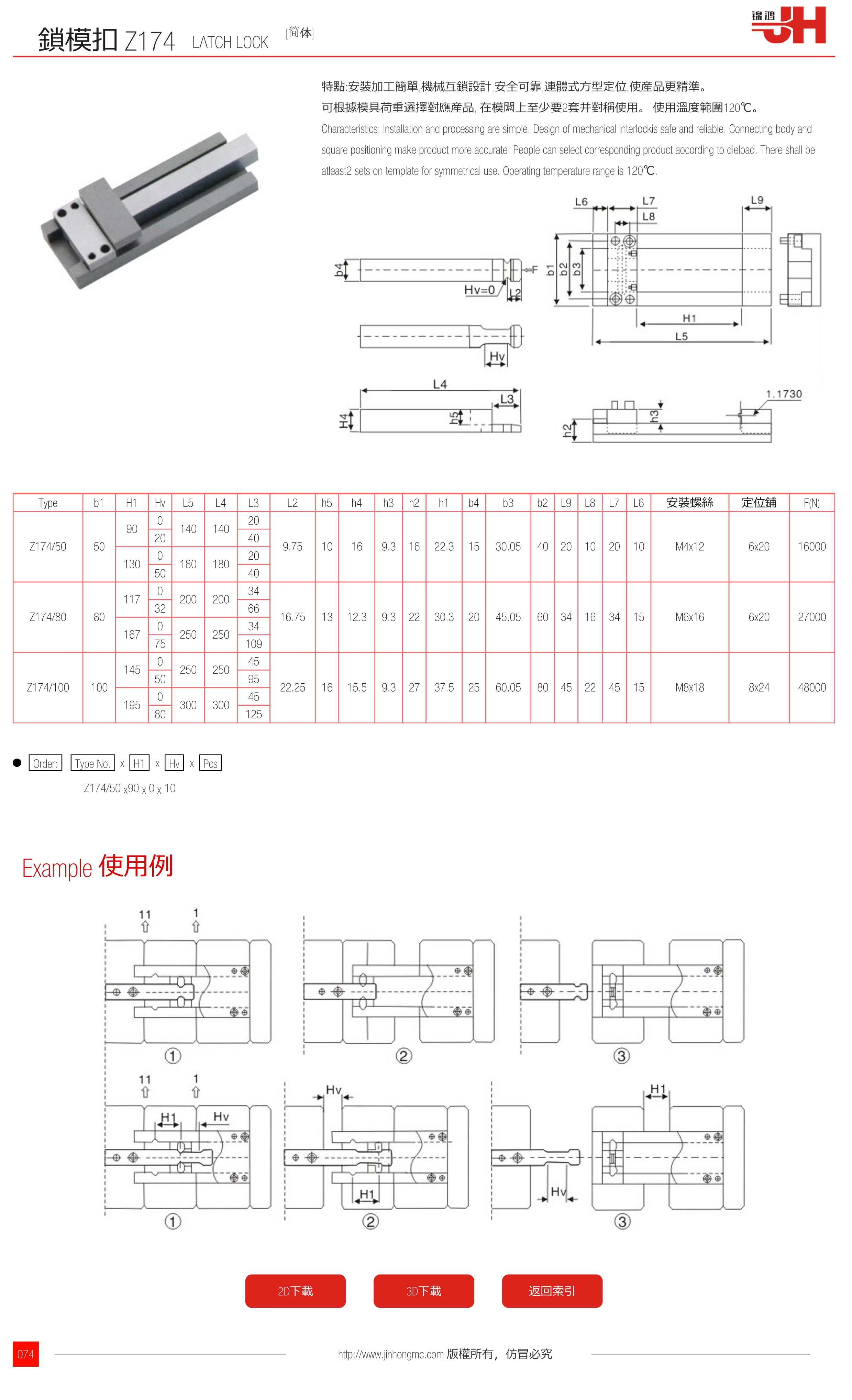 Characteristics: lnstallation and processing are simple. Design of mechanical interlockis safe and reliable. Connecting body and square positioning make product more accurate. People can select corresponding product aocording to dieload. There shall be atleast2 sets on template for symmetrical use. Operating temperature range is 120℃.
