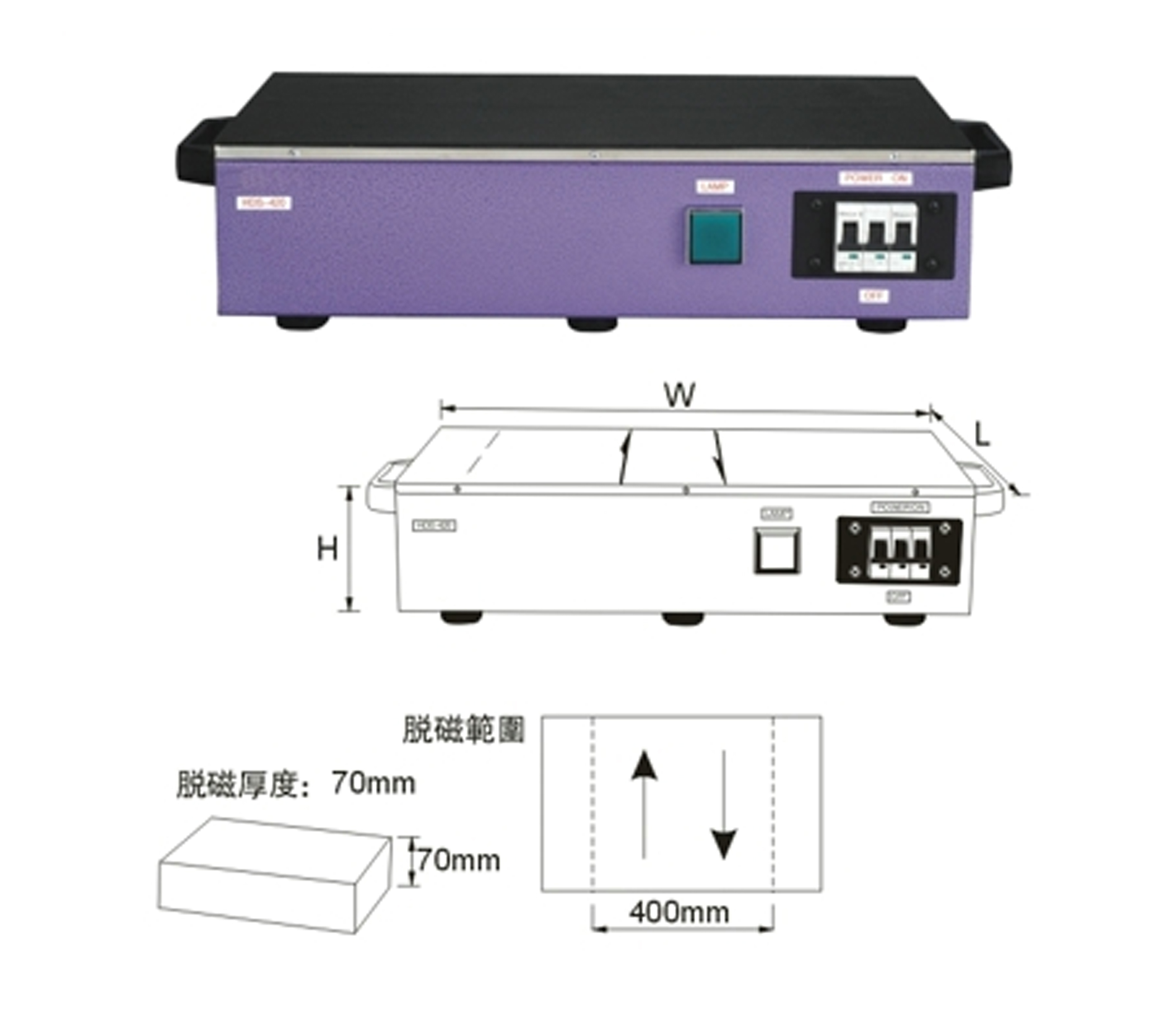 脫磁有效範圍400mm(16”),脫磁工件有效厚度70mm