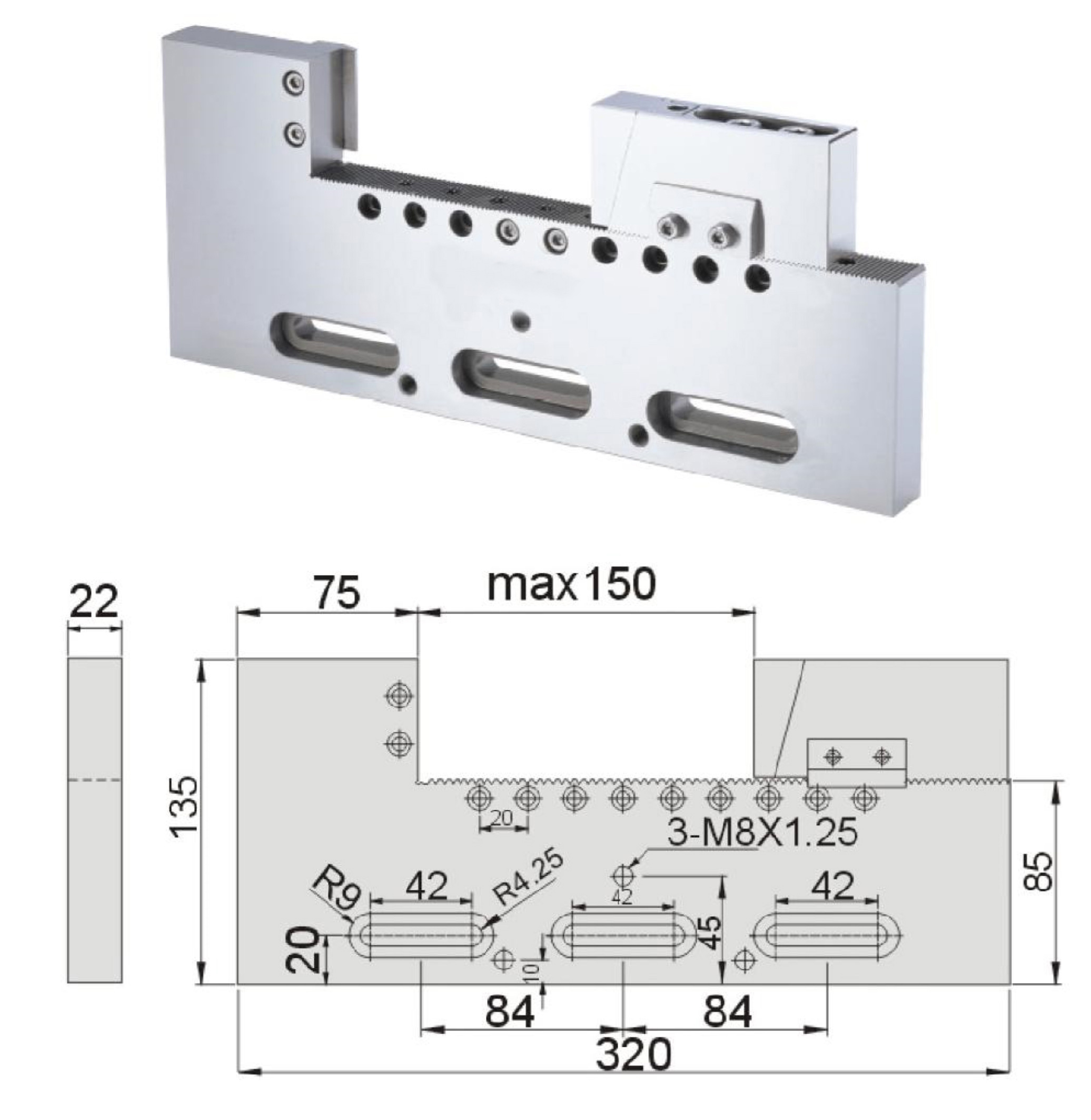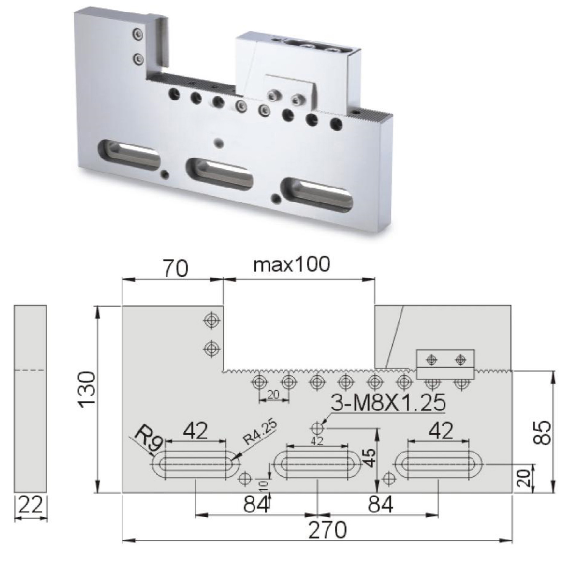 鉗口采用45度下鎖構造,不會出現(xiàn)工件上浮的現(xiàn)象。