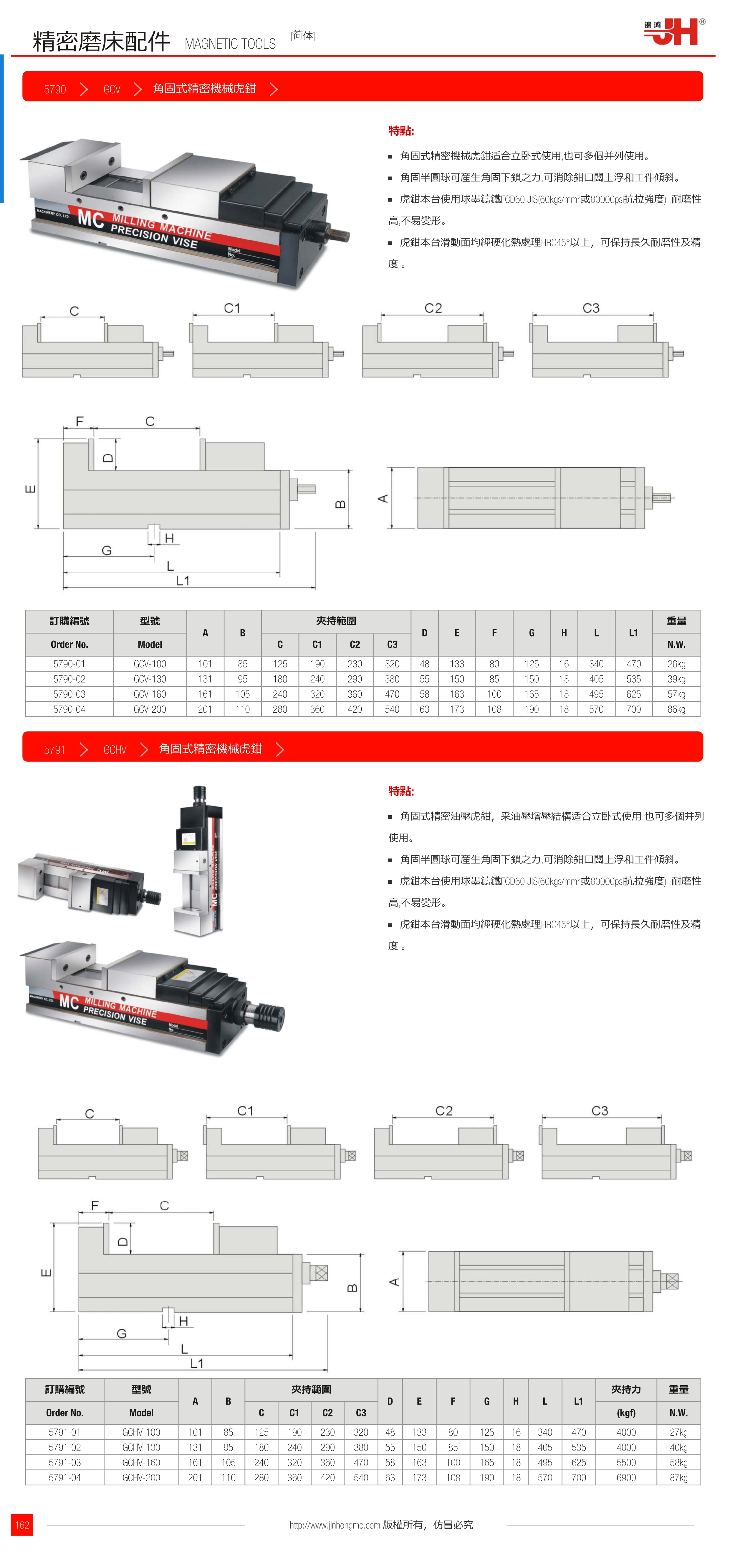 虎鉗本臺滑動面均經(jīng)硬化熱處理HRC45°以上,可保持長久耐磨性及精度 。