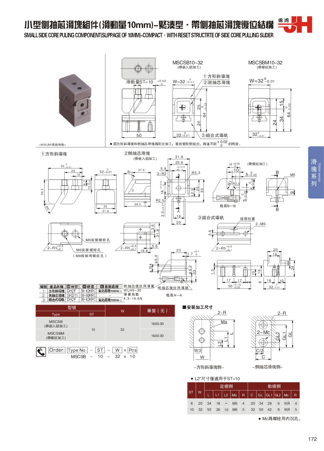 訂購:172-小型側(cè)抽芯滑塊組件(滑動(dòng)量10mm)-緊湊型˙帶側(cè)抽芯滑塊復(fù)位結(jié)構(gòu) MSCSB