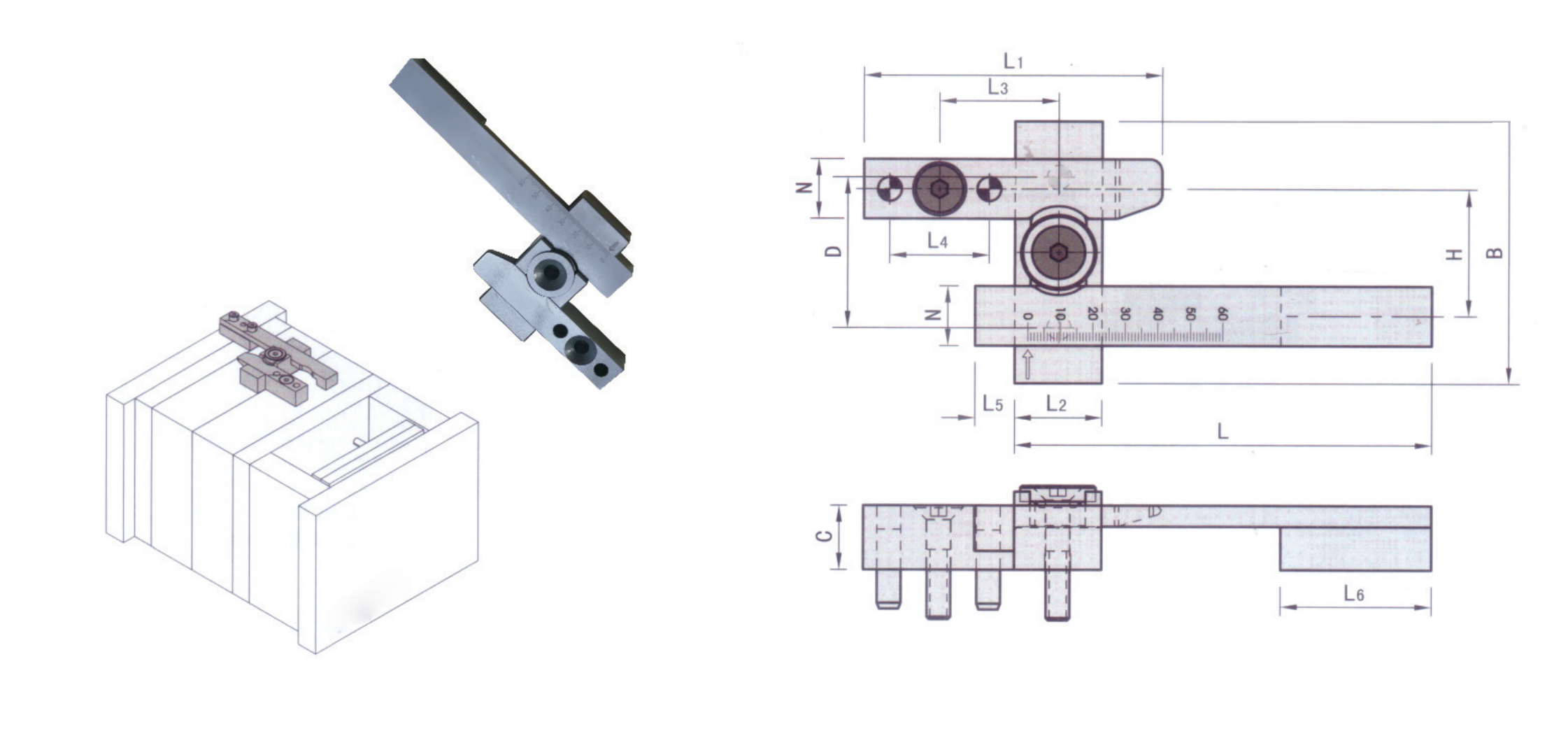 2.與一般的鎖模扣相比,帶有游標卡尺 的拉桿,可精確調整模板在不同區段和 距離的開閉動作。