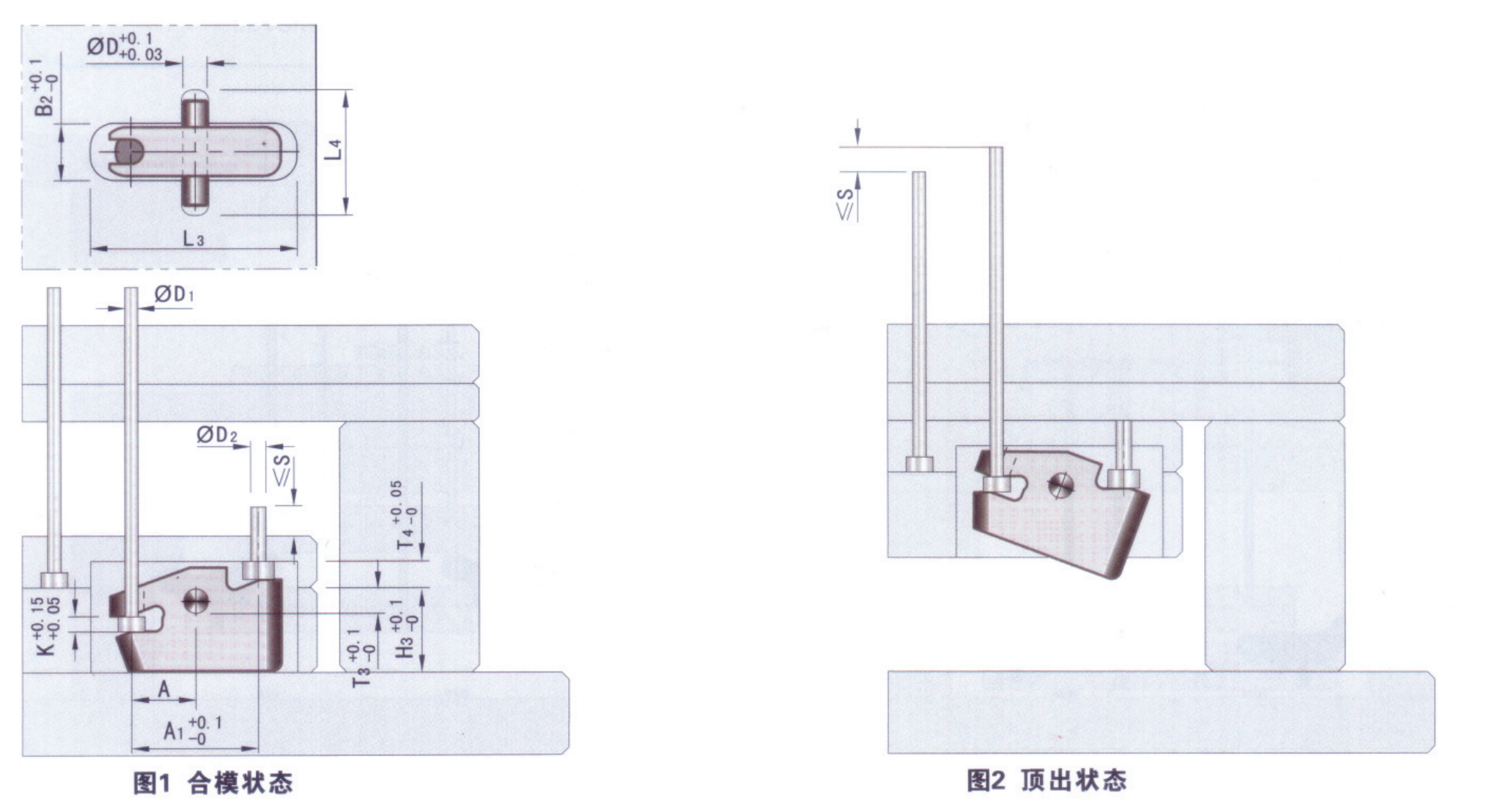 1.可安裝一支頂針,在頂出過程中能相對(duì)增加額外頂出行程;